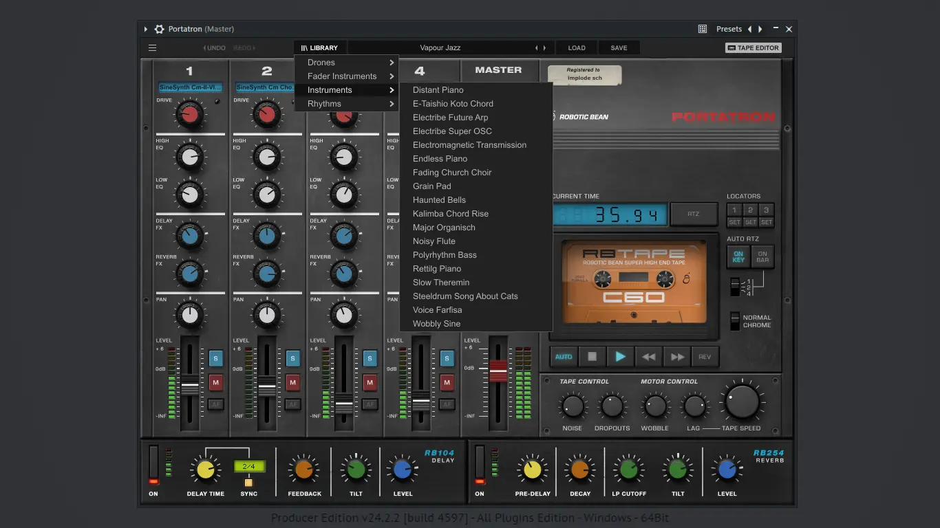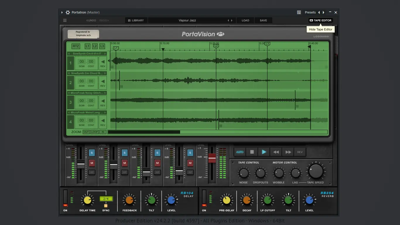 Portatron Tape Synthesizer — виртуальный инструмент, имитирующий звучание 4-дорожечного кассетного магнитофона, насыщенный лоу-фай эффектами и функциями для создания атмосферных саундскейпов. Программа позволяет использовать ленточные лупы, синхронизируемые с транспортом DAW, или играть ими как на монофоническом синтезаторе. Идеальное решение для музыкантов, продюсеров и звукорежиссёров, стремящихся придать своим проектам винтажную текстуру и живую акустическую глубину.