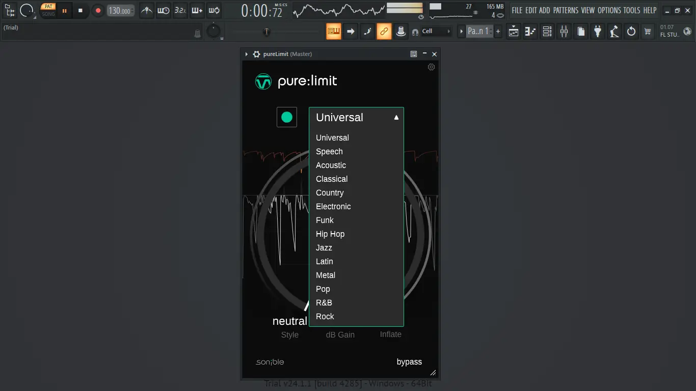 Использование плагина не требует сложных настроек. Достаточно установить pure:limit на шину мастер, выбрать подходящий жанровой профиль и нажать кнопку активации. Стиль обработки регулируется с помощью переключателя Style: Soft подойдёт для лёгких акустических композиций, Neutral — универсальный вариант, а Hard придаст энергичности электронным или рок-трекам. Параметр Inflate позволяет добавить плотности и вибрации, усиливая воспринимаемую громкость без увеличения пикового уровня. Для пользователей, предпочитающих ручное управление, доступен режим Manual, где можно точно настроить порог и другие параметры.