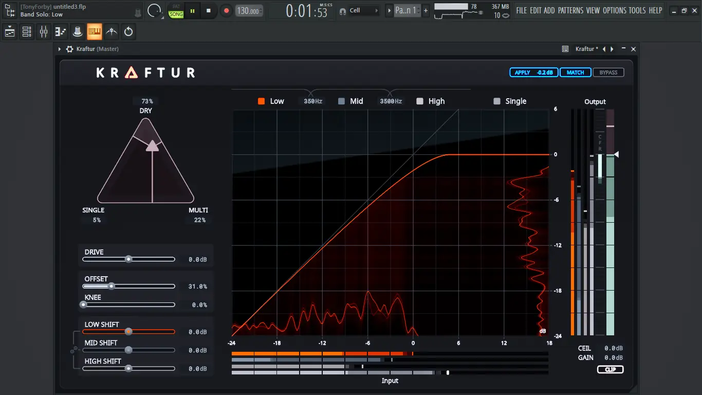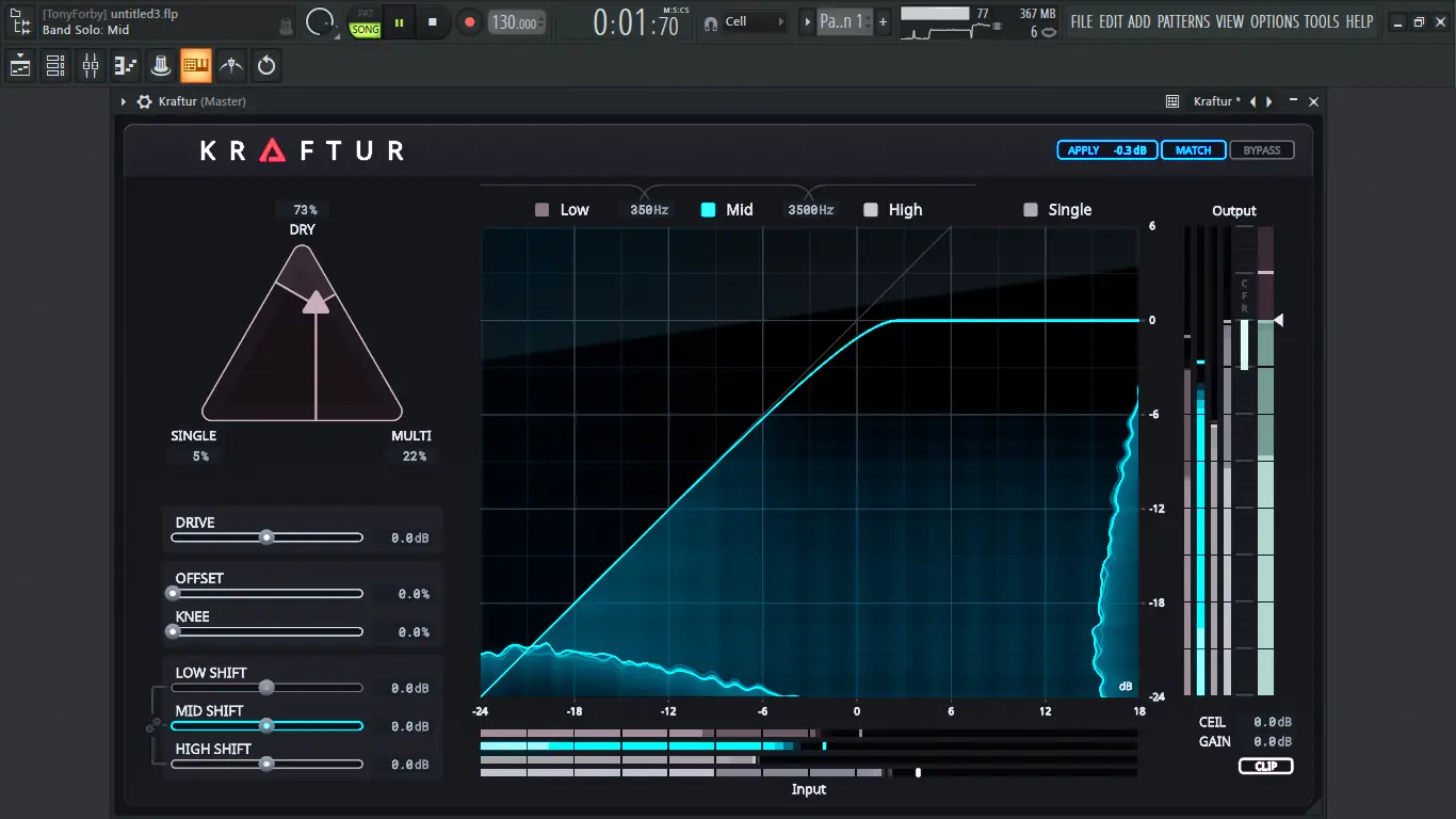 Kraftur делает звук более насыщенным и плотным, не перегружая микс артефактами.