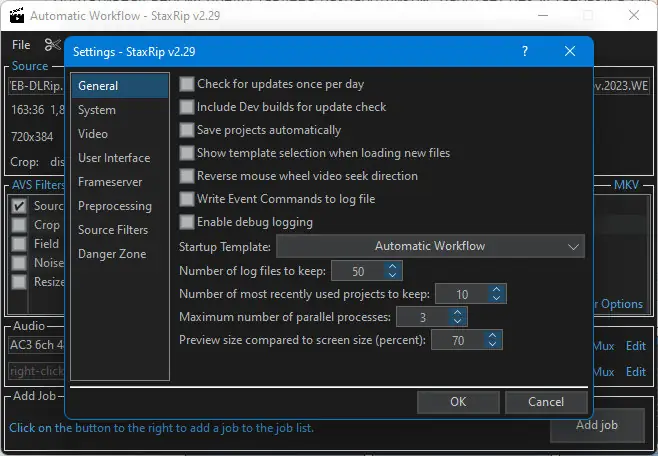 StaxRip предлагает высокий уровень гибкости и контроля над процессом кодирования, что делает его ценным инструментом для пользователей, стремящихся к идеальному качеству видео. Программа регулярно обновляется, получает новые функции и улучшения, включая поддержку современных стандартов сжатия. Несмотря на обилие возможностей, интерфейс остаётся интуитивно понятным, особенно при использовании готовых шаблонов. Тем не менее, сложные функции могут потребовать времени на изучение, особенно при ручной настройке фильтров и скриптов.