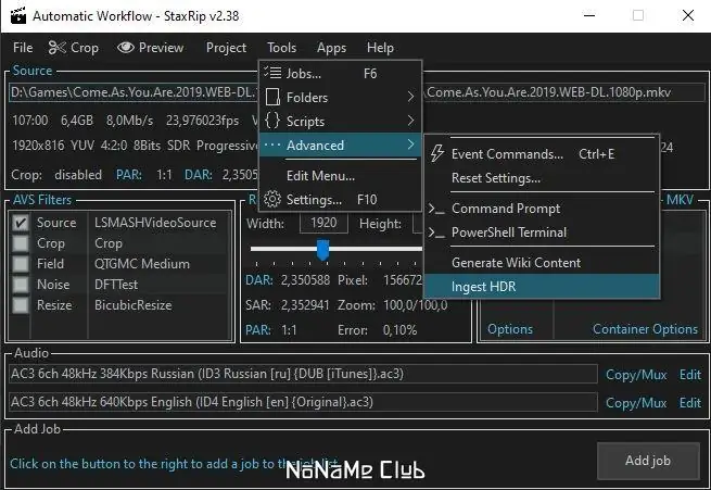StaxRip сочетает в себе мощь профессионального инструмента и удобство для пользователей среднего уровня.