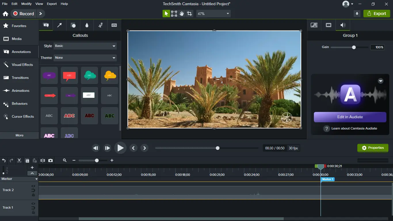 Работа с Camtasia начинается с выбора источника записи — можно захватывать весь экран, отдельное окно или заданную область. После записи фрагмент автоматически импортируется на временную шкалу, где доступны инструменты для редактирования. Пользователь может добавлять аудиодорожки, накладывать эффекты, вставлять изображения, изменять скорость воспроизведения и синхронизировать звук. Интерфейс интуитивно понятен, а встроенное предпросмотр позволяет оценить результат до финального экспорта. После завершения монтажа видео можно сохранить локально или опубликовать в интернете.