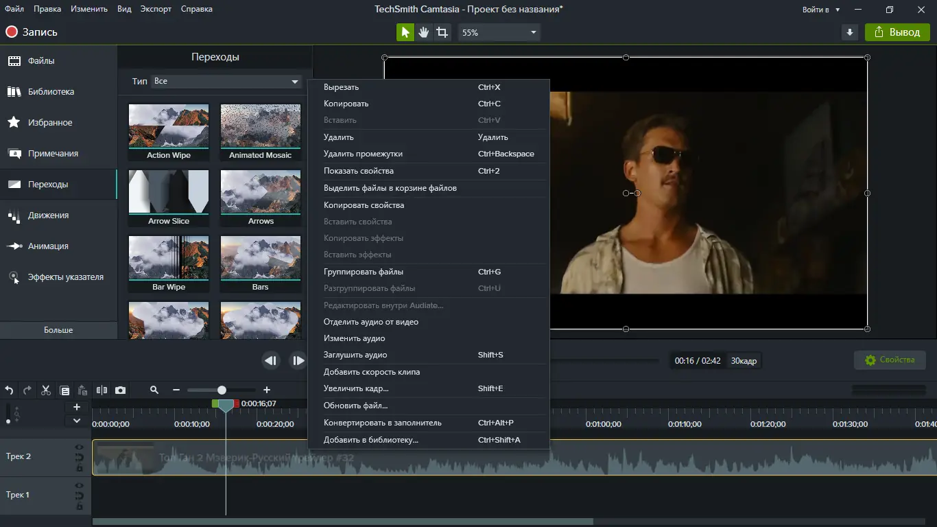Camtasia предоставляет комплексное решение для создания и редактирования видео на уровне профессионального студийного программного обеспечения. Программа позволяет записывать действия на экране, включая системные звуки, микрофон и веб-камеру, сохраняя всё в высоком качестве. Встроенный видеоредактор поддерживает работу с несколькими дорожками, наложение титров, анимации, переходов и звуковых эффектов, что делает процесс монтажа интуитивно понятным и эффективным.