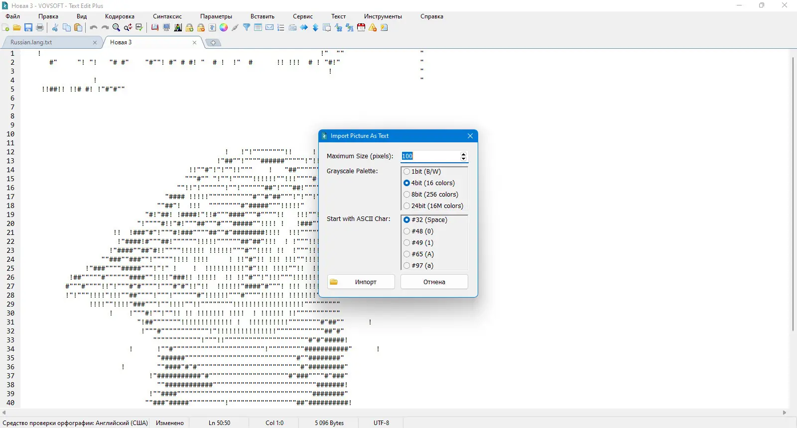 Программа доступна в установочной и портативной версии, что обеспечивает гибкость в использовании. Распространение осуществляется без использования torrent-раздач, что гарантирует безопасность загрузки. Пользователи могут настроить внешний вид редактора, включая цвет фона и параметры шрифта, а также использовать функции вроде рандомизации строк или их обратного порядка. Дополнительно реализована возможность импорта изображений в виде ASCII-арта, что может быть полезно в творческих или технических задачах.