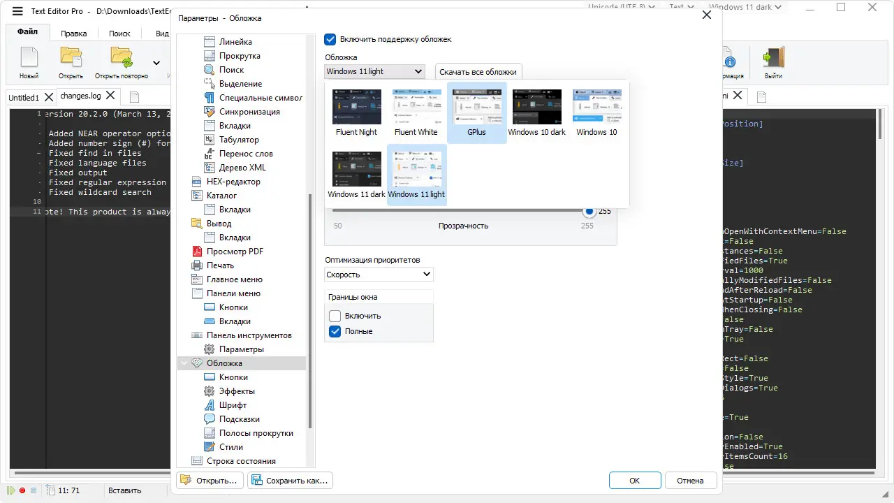 - Более ста готовых скинов для персонализации внешнего вида редактора