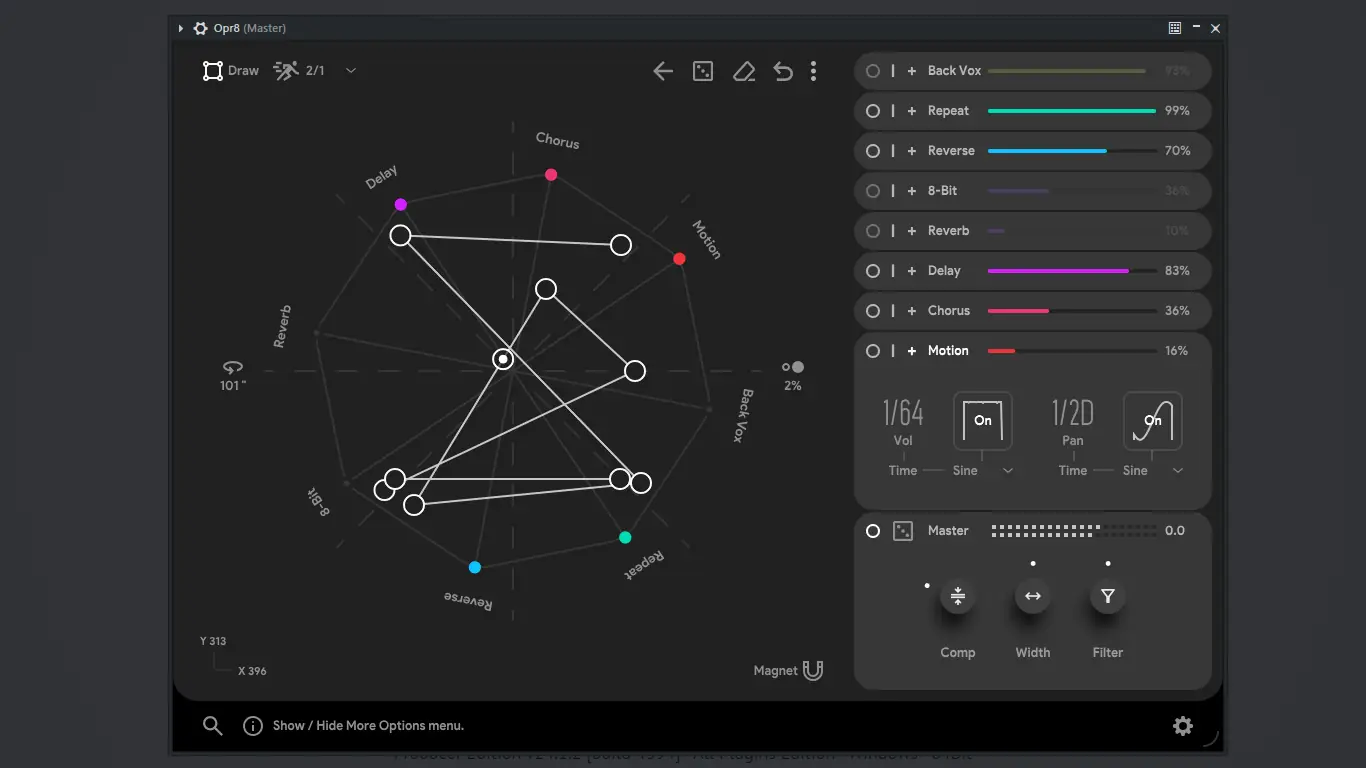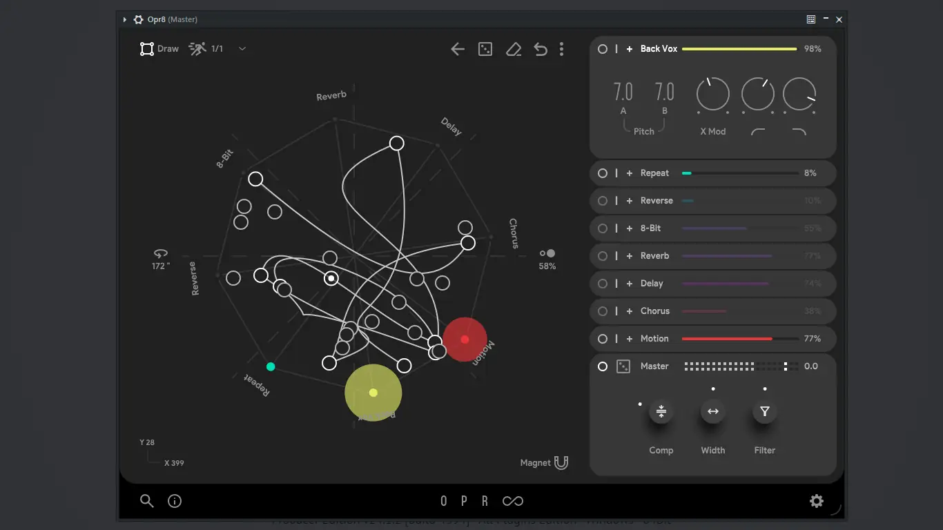 Использование Thenatan начинается с установки плагина в аудиостанции. После загрузки в трек пользователь получает доступ к восьми основным блокам эффектов: реверберация, задержка, модуляция, бит-крещение, реверс, вокодерная обработка, повторы и динамическая трансформация сигнала. Каждый блок можно включать или отключать, а также регулировать интенсивность воздействия. С помощью графического редактора Polygon Pad можно вручную рисовать кривые автоматизации, создавая сложные архитектуры изменения параметров во времени. Дополнительные инструменты, такие как Skew Knob и Randomizer, позволяют вносить элементы хаоса и непредсказуемости в звук, что особенно полезно при создании экспериментальной музыки.