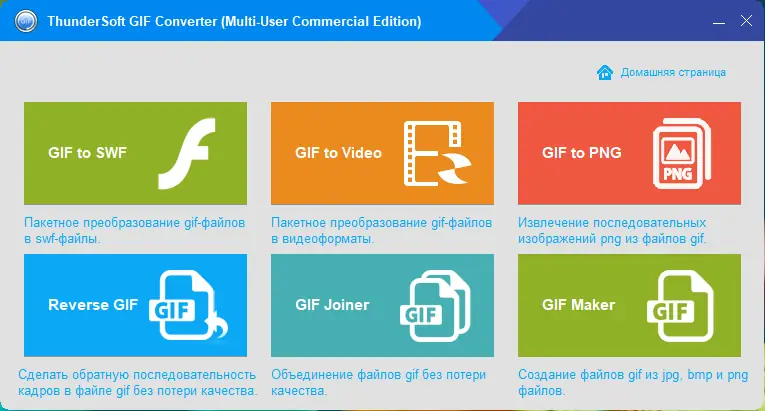 ThunderSoft GIF Converter — универсальный инструмент для преобразования и редактирования анимированных изображений. Программа объединяет шесть функций в одном интерфейсе: конвертация GIF в видео, SWF, PNG, создание GIF из изображений, объединение анимаций и реверсирование кадров. Поддержка пакетной обработки, высокая скорость работы и сохранение качества делают её незаменимой для работы с графическим контентом.