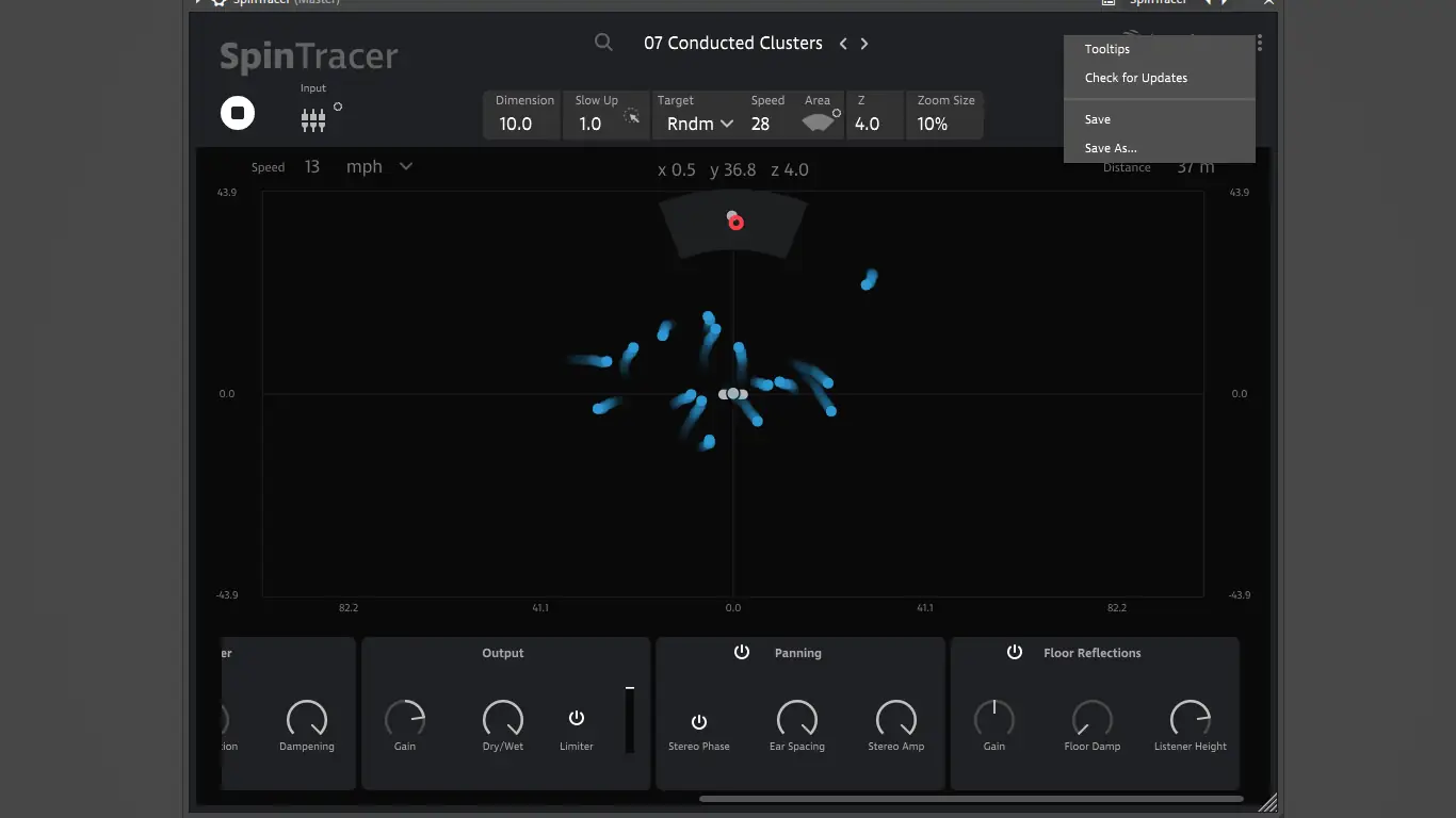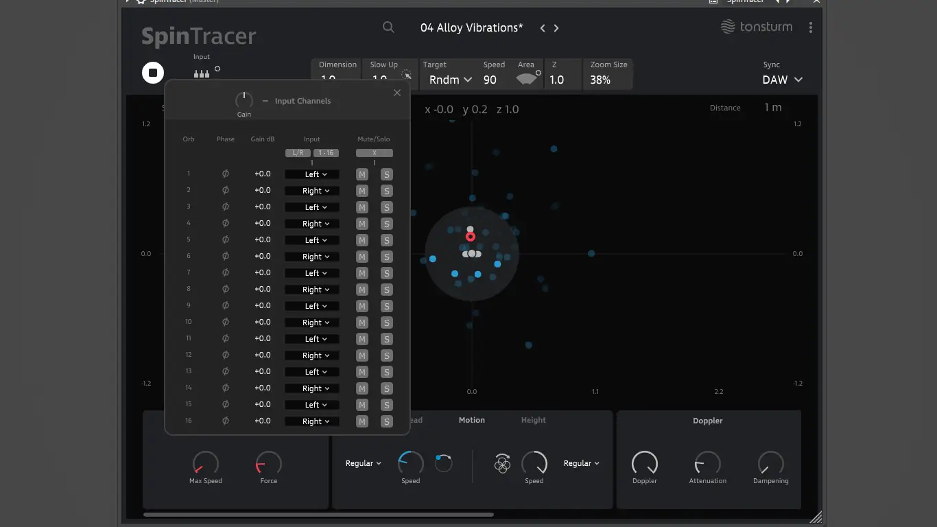 TONSTURM представляет собой продвинутый аудиоплагин, ориентированный на работу с пространственным звуком в реальном времени. Основой его функционала является физический движок, способный моделировать поведение звуковых источников в трёхмерной среде с учётом эффектов Доплера, отражений и гравитационного воздействия. Каждый звуковой объект можно точно позиционировать с помощью мыши, что обеспечивает высокую степень контроля над динамикой и траекторией движения.