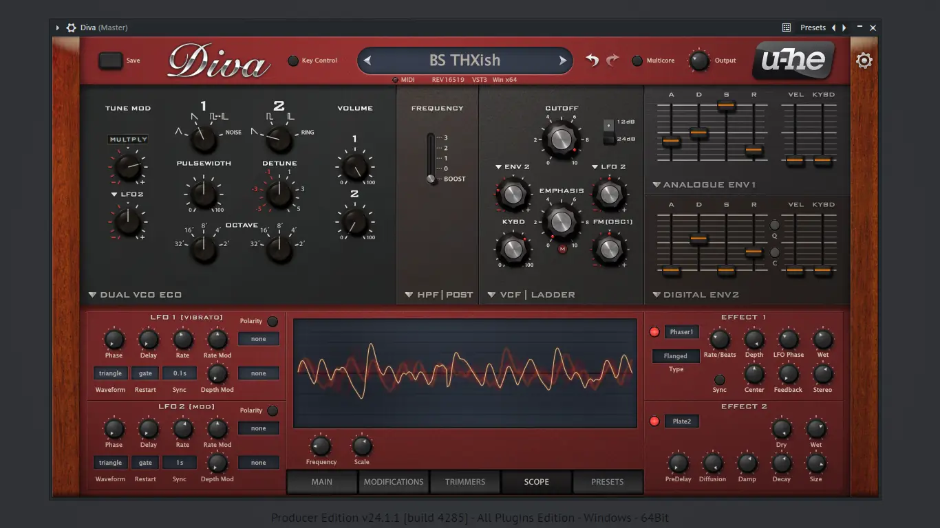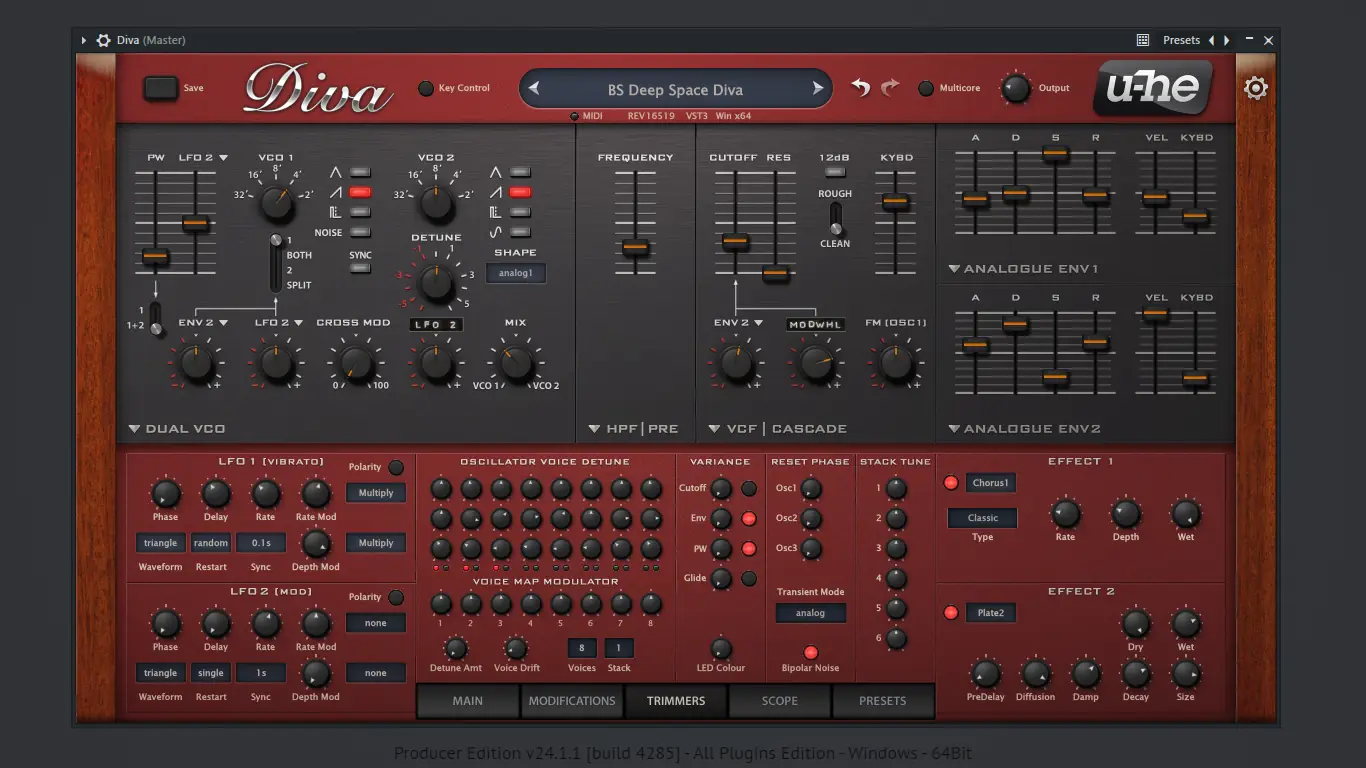 u-he Diva — это программный синтезатор, разработанный с акцентом на аутентичное аналоговое звучание. Инструмент вобрал в себя черты знаменитых моно- и полифонических синтезаторов, выпускавшихся с 1970-х по 1990-е годы. Каждый компонент — от осцилляторов до фильтров — тщательно смоделирован с учётом нелинейностей и характеристик аналоговой электроники.