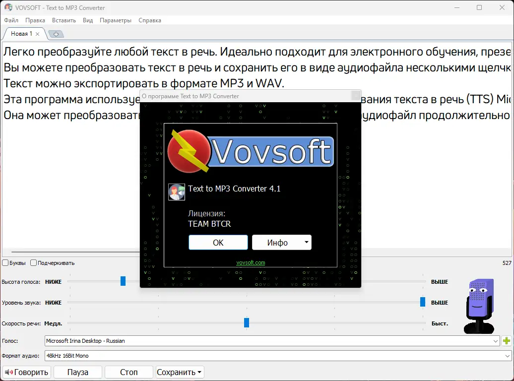 Описание Vovsoft Text to MP3 Converter
