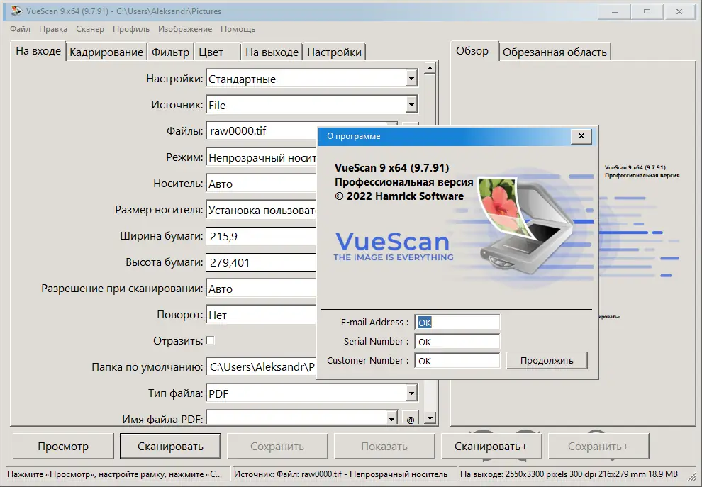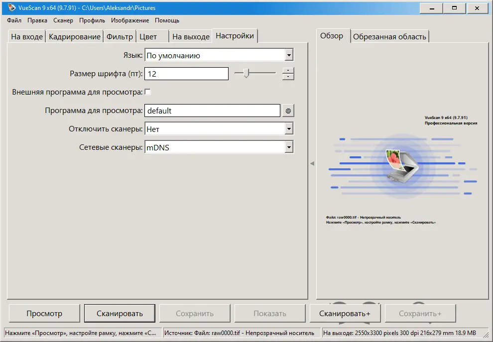 - Возможность работы с raw-файлами и многопроходное сканирование