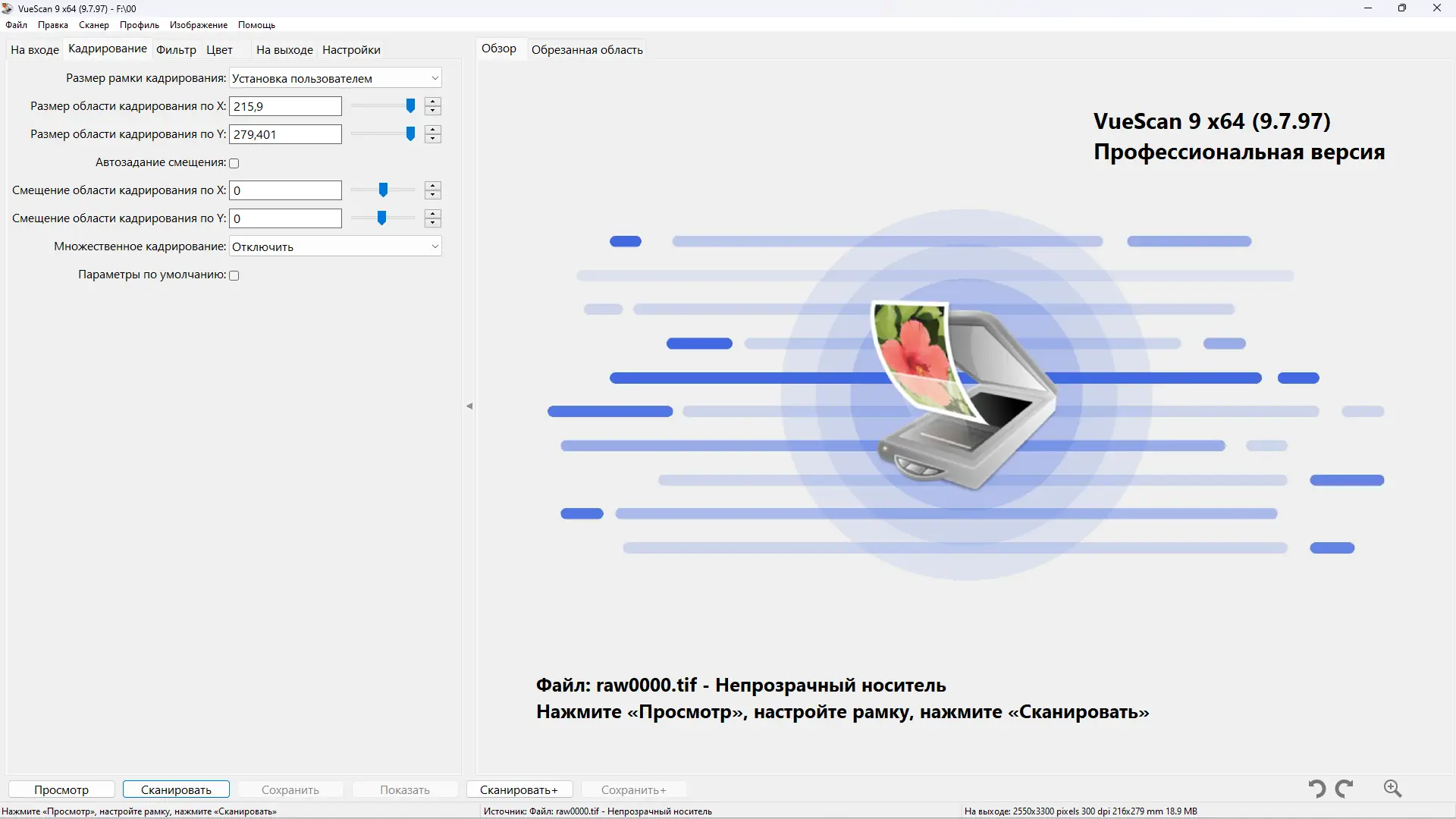 - Возможность создания RAW-файлов для последующей обработки без повторного сканирования