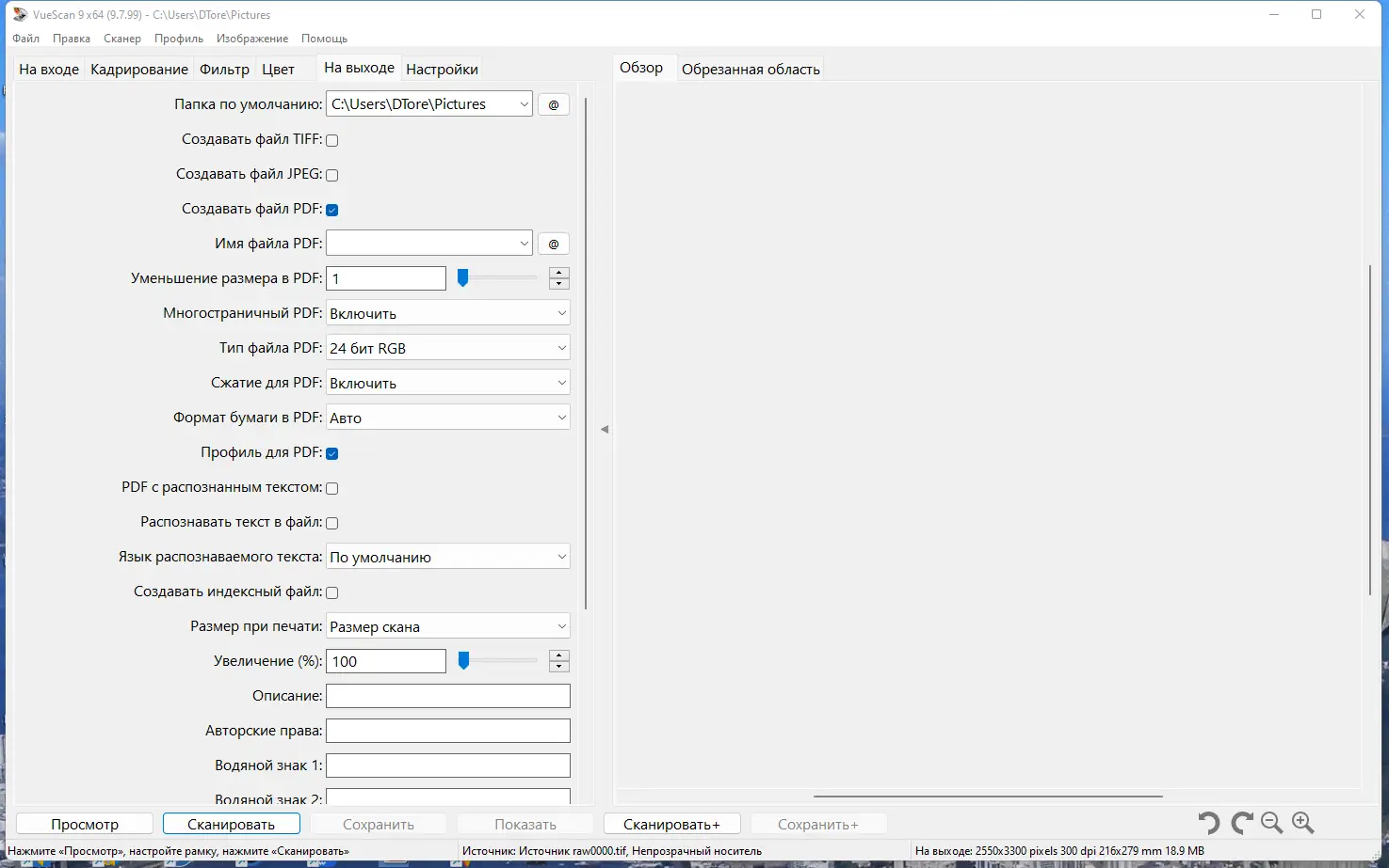 - Работа с RAW-файлами сканирования для последующей обработки без повторного использования устройства