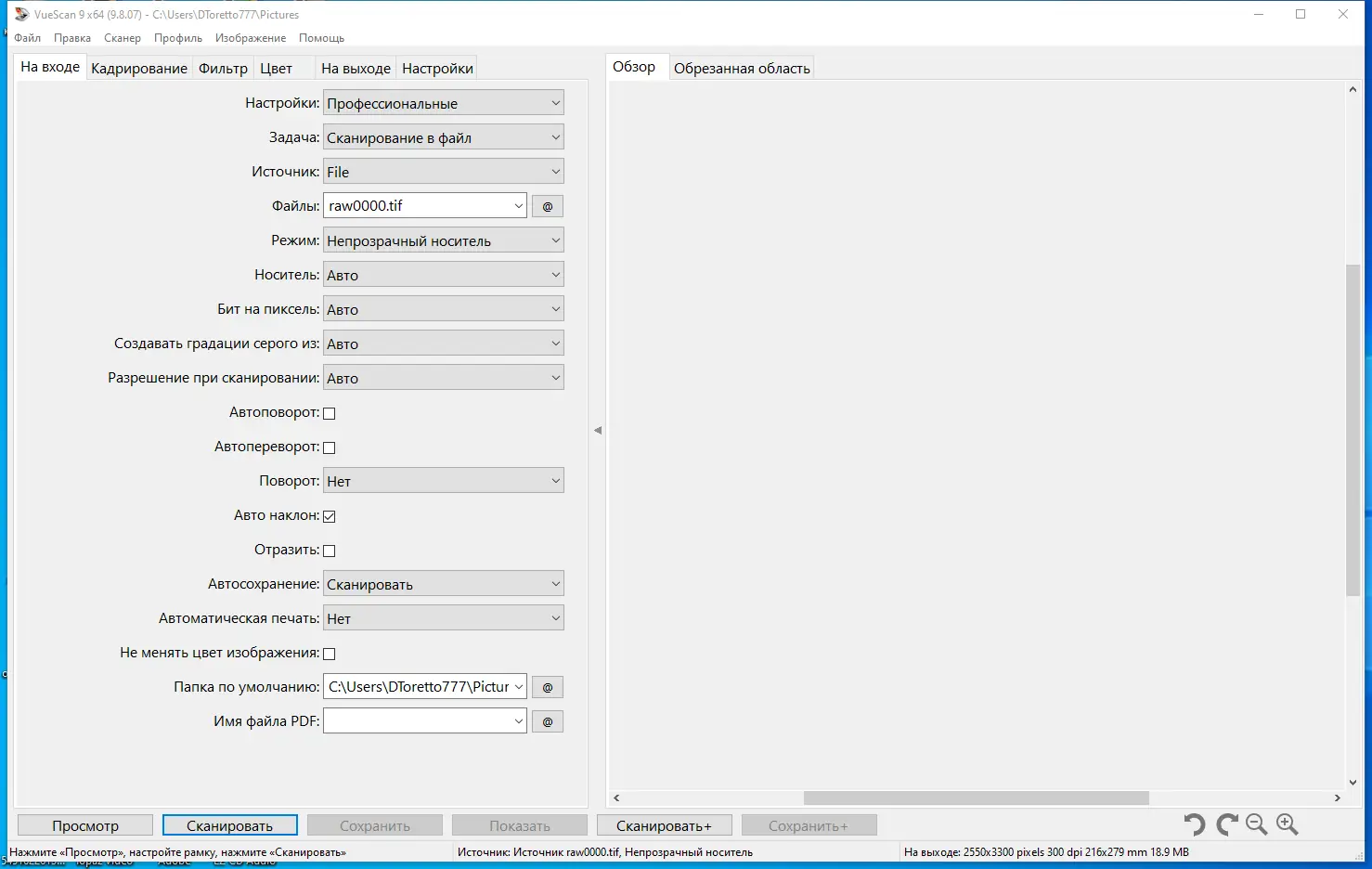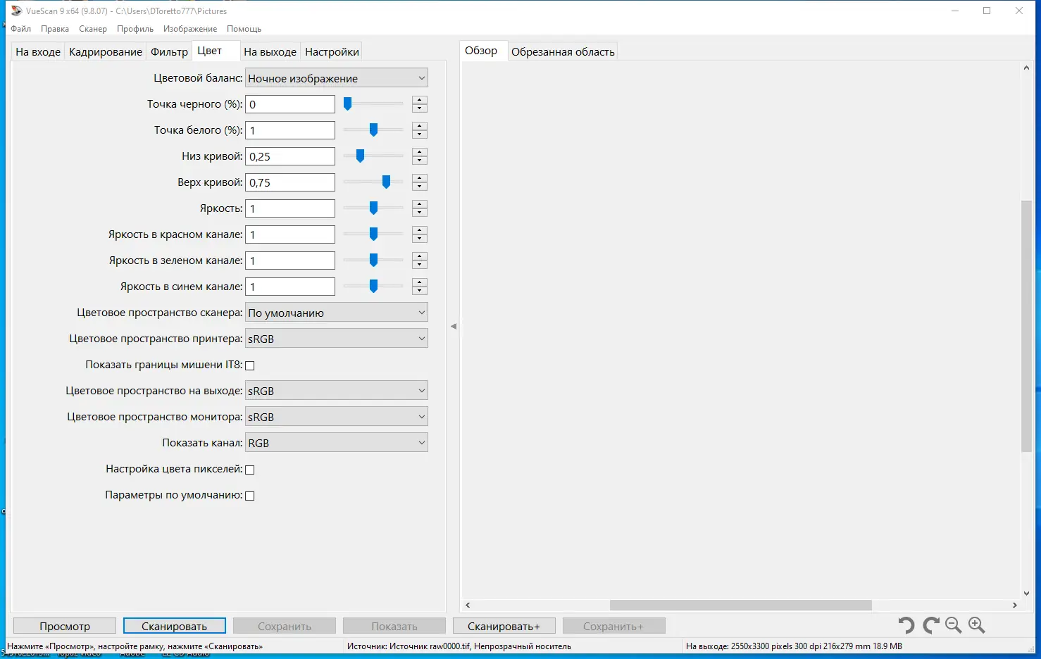 - Сохранение сканированных изображений в RAW-формате для дальнейшей обработки
