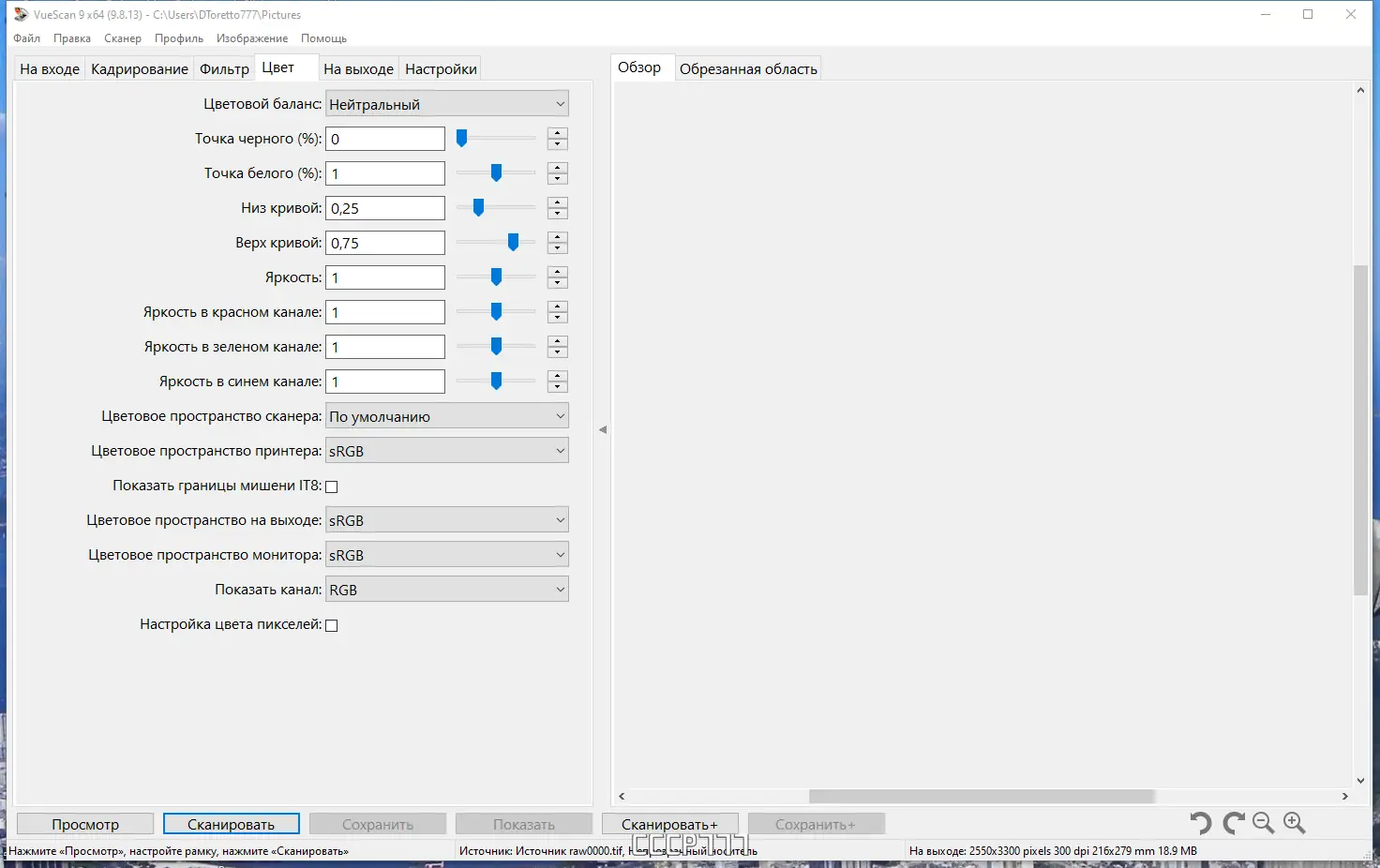 VueScan предоставляет расширенный контроль над процессом сканирования, выходящий за рамки возможностей стандартных драйверов. Программа использует скрытые функции аппаратного обеспечения, позволяя настраивать экспозицию, цветовой баланс, динамический диапазон и градационную характеристику по каждому каналу отдельно — красному, зеленому и синему. Поддержка RAW-формата дает возможность сохранять необработанные данные сканирования для последующей постобработки в других приложениях, что особенно важно при работе с архивными материалами и негативами.