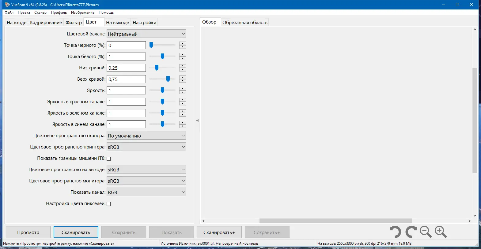 - Возможность сканирования в RAW и последующей гибкой обработки.