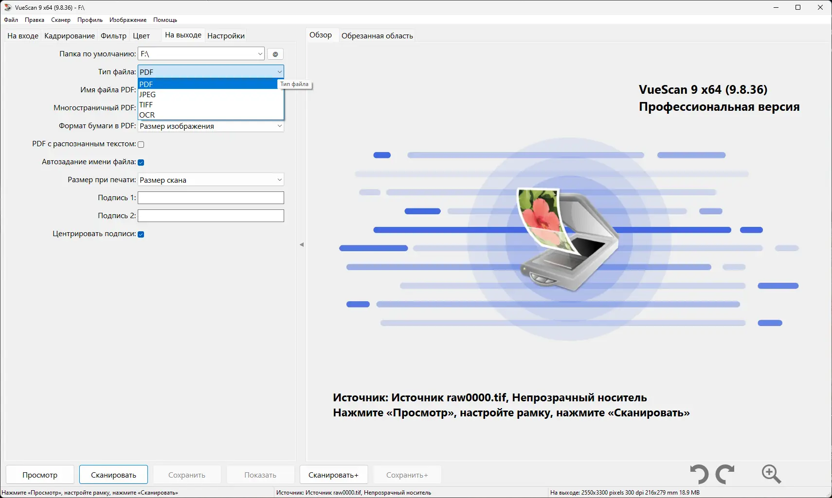 - Функция сохранения сканированных данных в сыром формате (raw file), что позволяет повторно обрабатывать изображения без повторного сканирования.