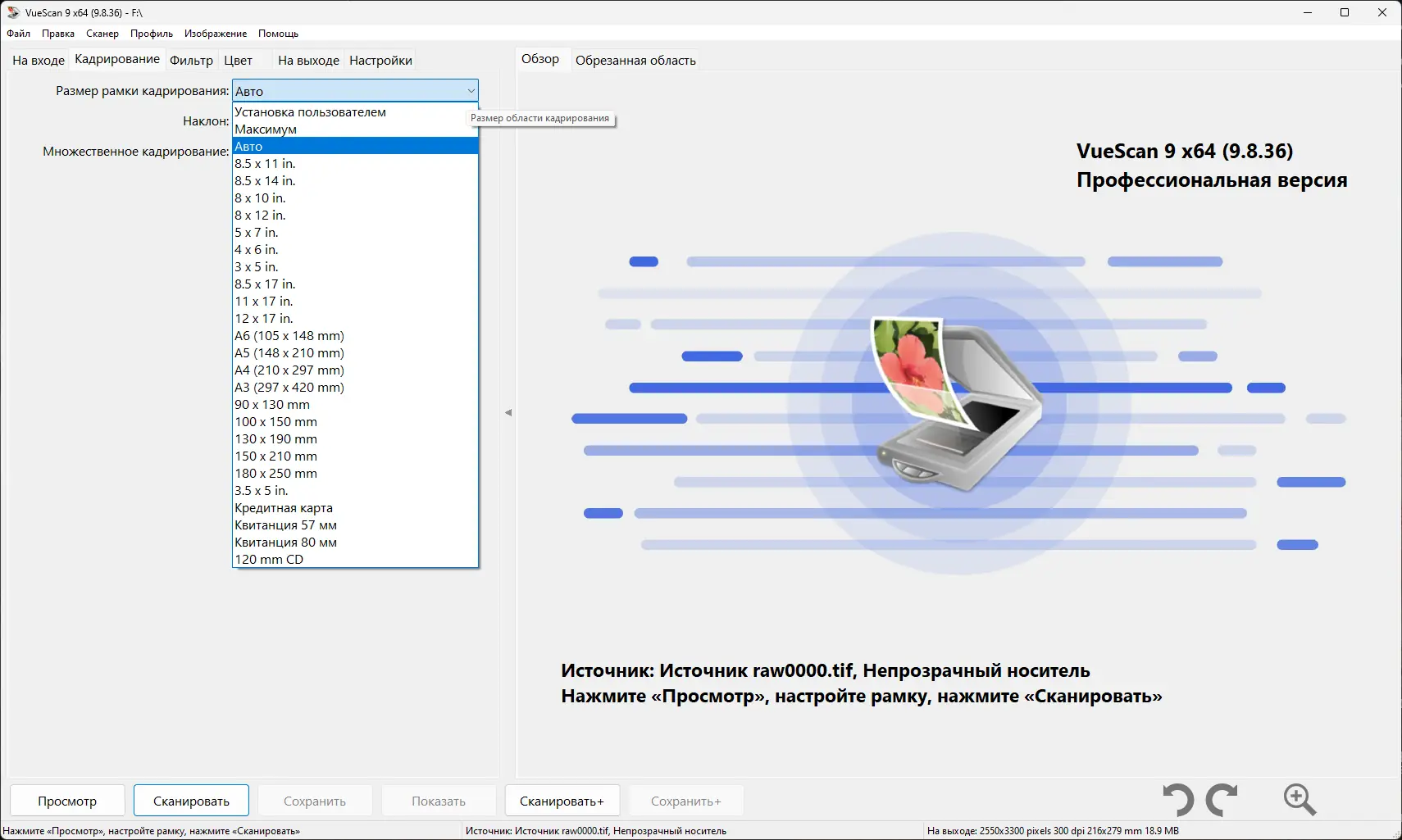 - Поддержка более 7400 моделей сканеров и 185 типов цифровых камер с возможностью обработки RAW-файлов.
