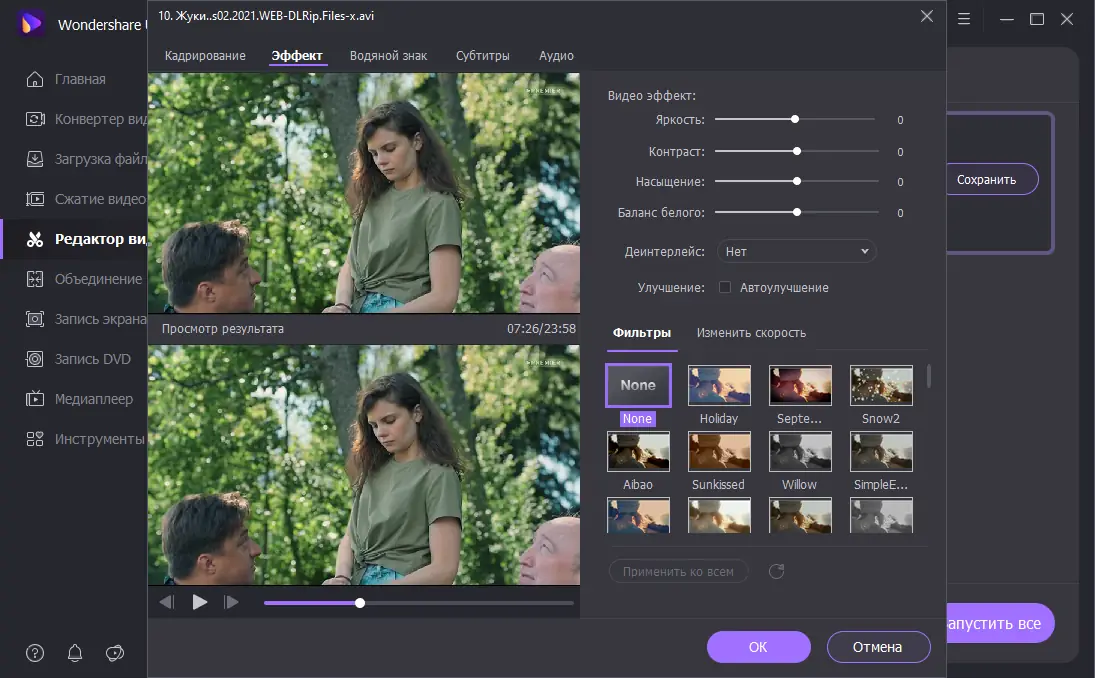 - Инструменты для редактирования: обрезка, объединение, наложение водяных знаков, коррекция цвета