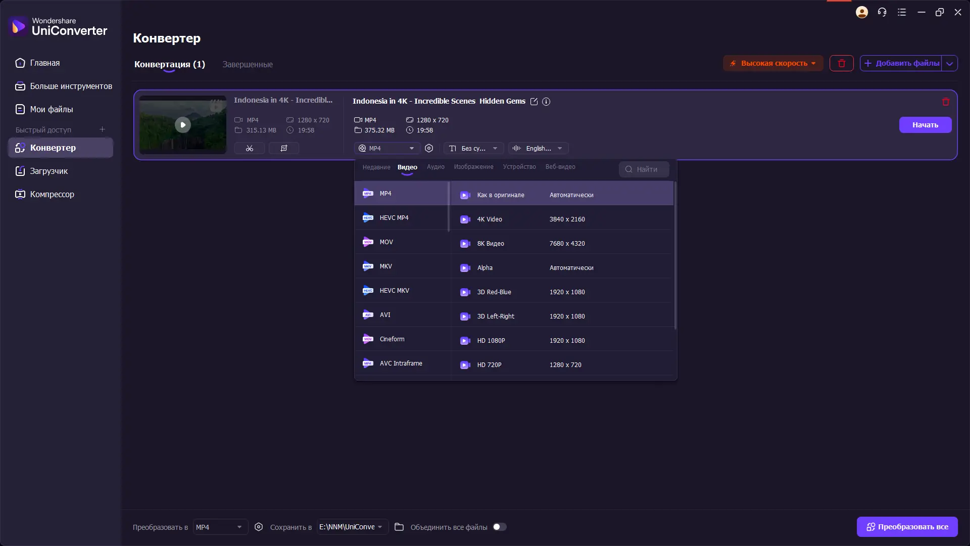 Wondershare UniConverter представляет собой универсальное решение для работы с видео и аудио, объединяющее в себе функции конвертера, редактора, рекордера и менеджера медиафайлов. Программа поддерживает более тысячи форматов, что делает её совместимой с любыми устройствами, включая смартфоны, планшеты, игровые приставки и телевизоры. Благодаря технологии аппаратного ускорения, конвертация происходит в десятки раз быстрее, сохраняя исходное качество изображения и звука.
