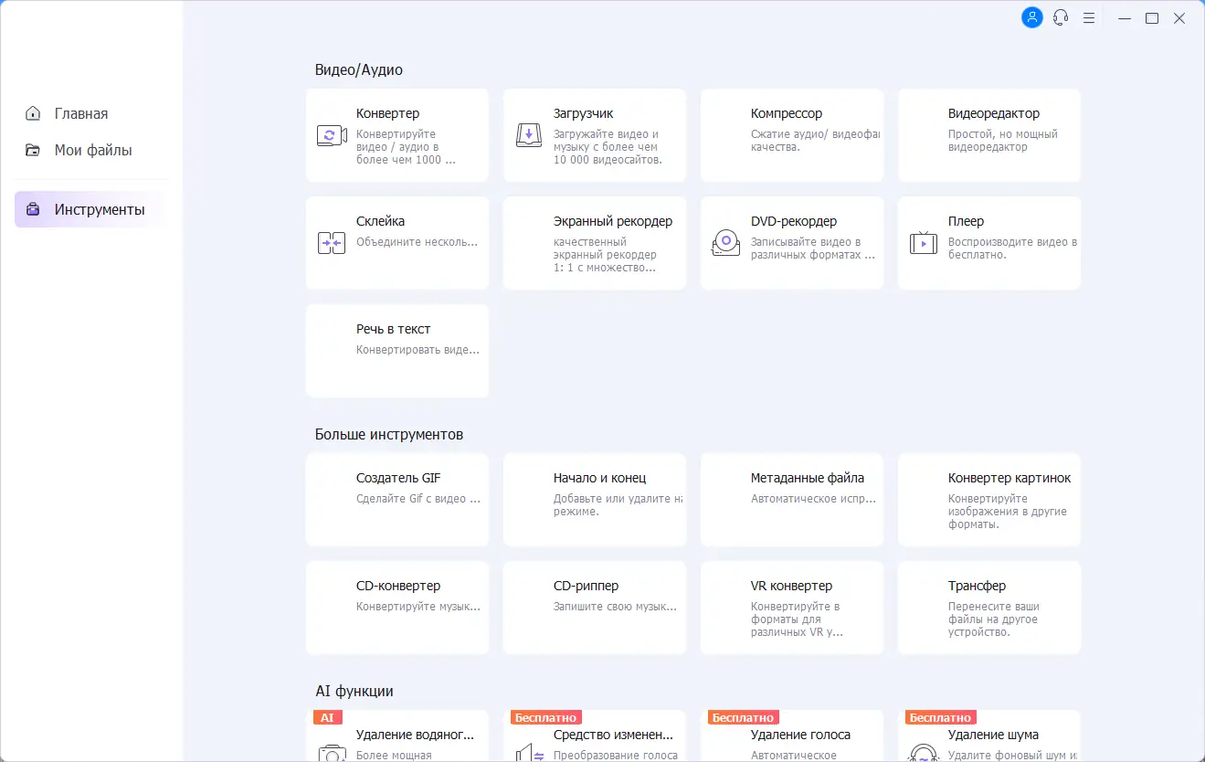 Программа предлагает комплексный подход к обработке видео, объединяя в одном интерфейсе такие функции, как конвертация, редактирование, запись на диск и передача на устройства. Поддержка AI-инструментов, включая удаление фонового шума, автоматическое кадрирование и удаление фона, повышает качество конечного результата. Портативная версия позволяет использовать программу с флеш-накопителя без установки, что удобно для мобильного использования. Однако из-за большого количества функций новичкам может потребоваться время для освоения всех возможностей.