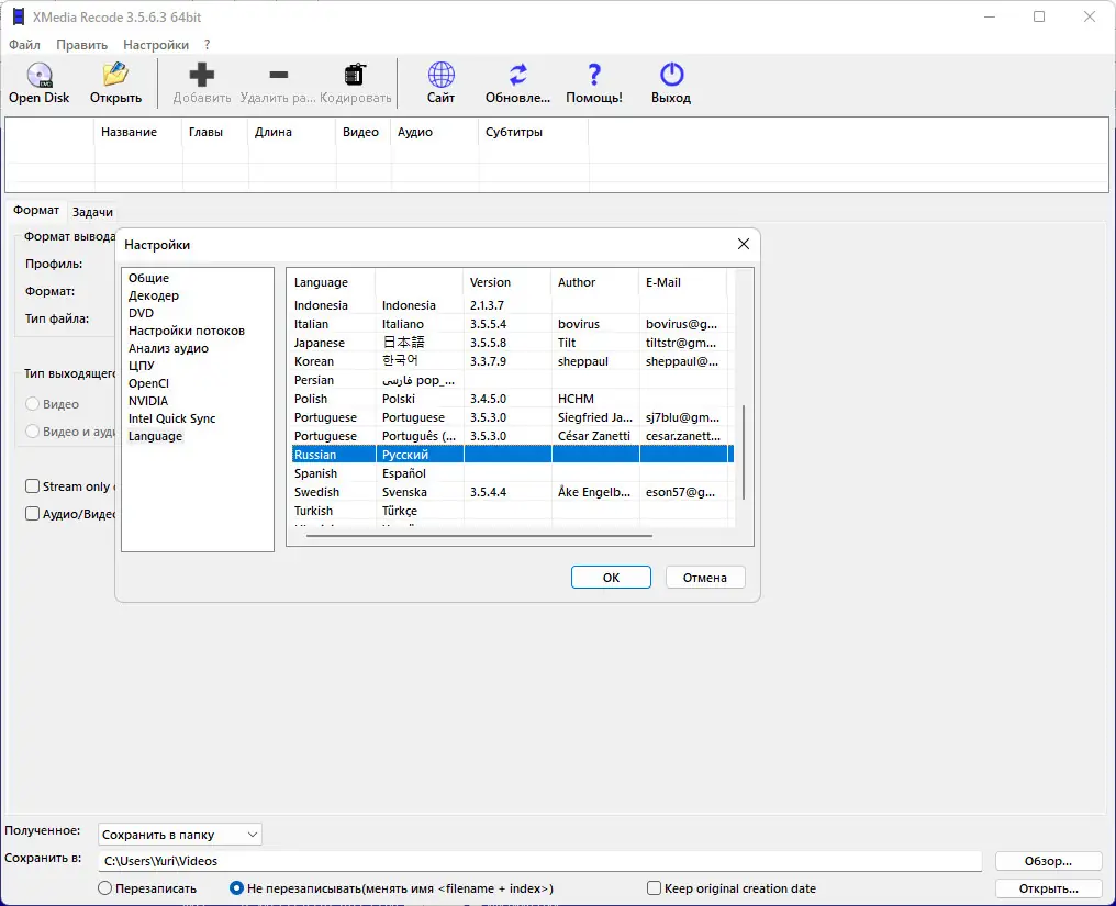XMedia Recode — это универсальный конвертер медиафайлов, предназначенный для транскодирования видео и аудио в форматы, пригодные для воспроизведения на различных устройствах. Программа поддерживает огромное количество входных и выходных форматов, включая AVI, MKV, MP4, FLV, DVD, WebM, H.264, H.265 и многие другие. Благодаря интуитивно понятному интерфейсу, работа с приложением не вызывает сложностей даже у новичков.