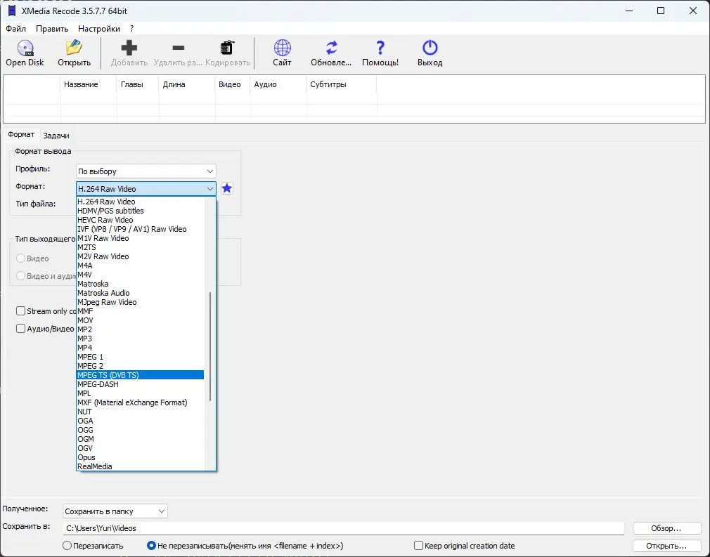 XMedia Recode — это программное обеспечение, ориентированное на преобразование видео и аудио в форматы, пригодные для воспроизведения на различных устройствах. Утилита поддерживает огромное количество входных и выходных форматов, включая AVI, MP4, MKV, FLV, MOV, H.264, H.265, WebM и многие другие. Она позволяет не только конвертировать файлы, но и выполнять предварительную обработку, такую как изменение разрешения, коррекция цвета и обрезка по времени.