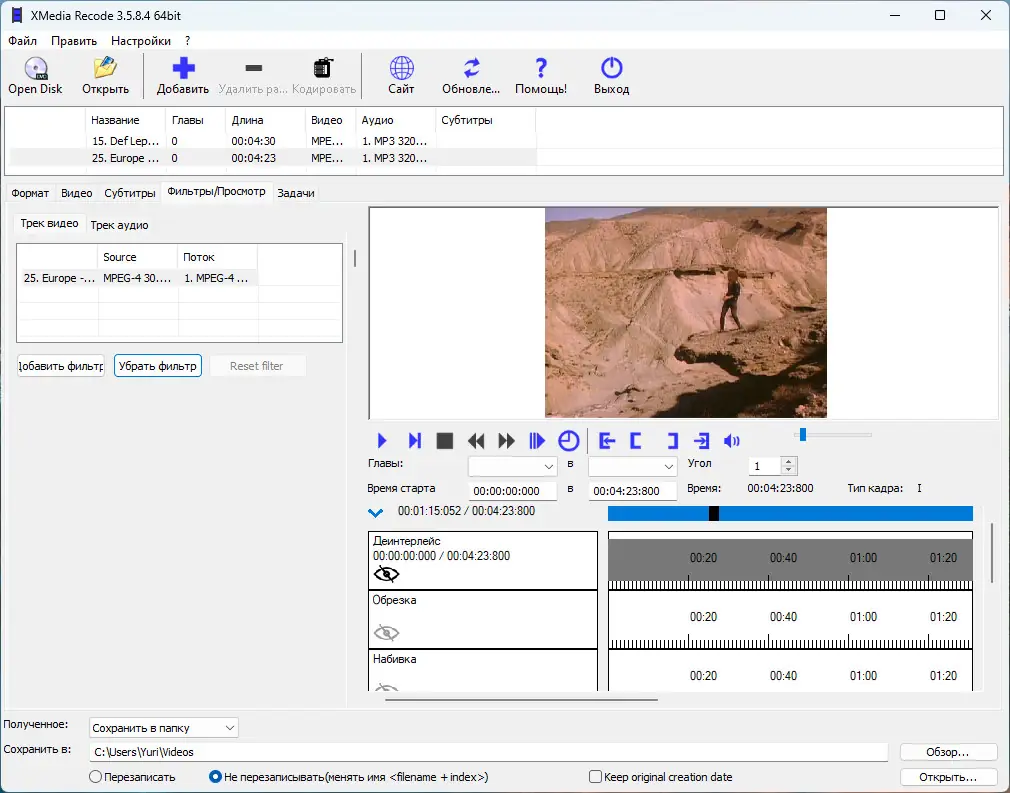 XMedia Recode — это универсальный конвертер, ориентированный на пользователей, которым необходимо быстро и качественно преобразовать видеофайлы под нужное устройство. Программа поддерживает практически все существующие форматы, включая AVI, MKV, MP4, FLV, MOV, WebM, H.264, H.265 и многие другие. Она позволяет не только менять формат, но и выполнять базовое редактирование: обрезку по времени, изменение разрешения, коррекцию цвета и звука. Работа с аудиодорожками также реализована на высоком уровне — можно извлекать звук из видео, нормализовать громкость и конвертировать в MP3, WAV, AAC и иные аудиоформаты.