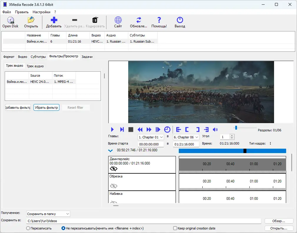 Интеграция современных кодеков, таких как H.265 и AV1, делает XMedia Recode актуальной даже для работы с высококачественным видео высокого разрешения.