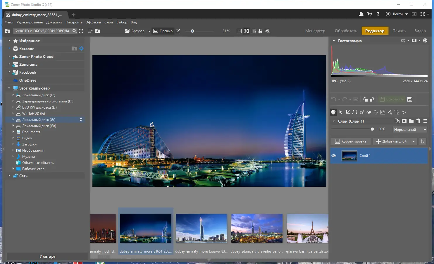 - Поддержка форматов RAW, JPEG, PNG, TIFF и других графических стандартов