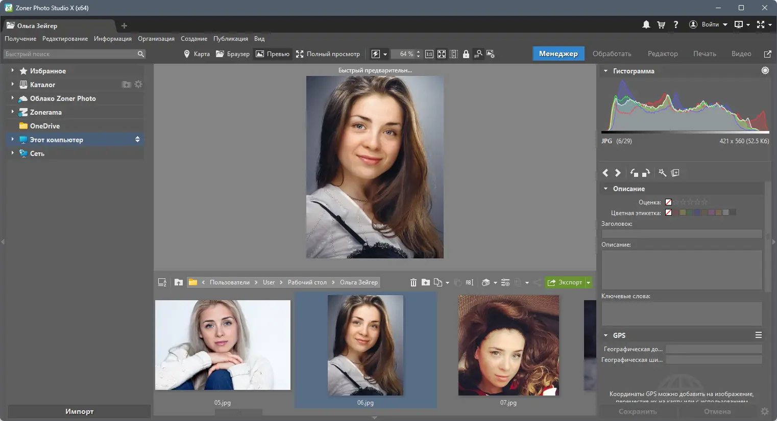 Описание Zoner Photo Studio