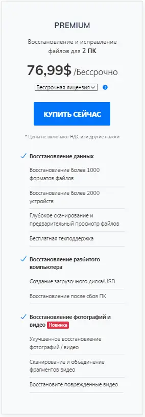 - Восстановление данных после более чем 500 сценариев потери, включая вирусные атаки и сбои BIOS.