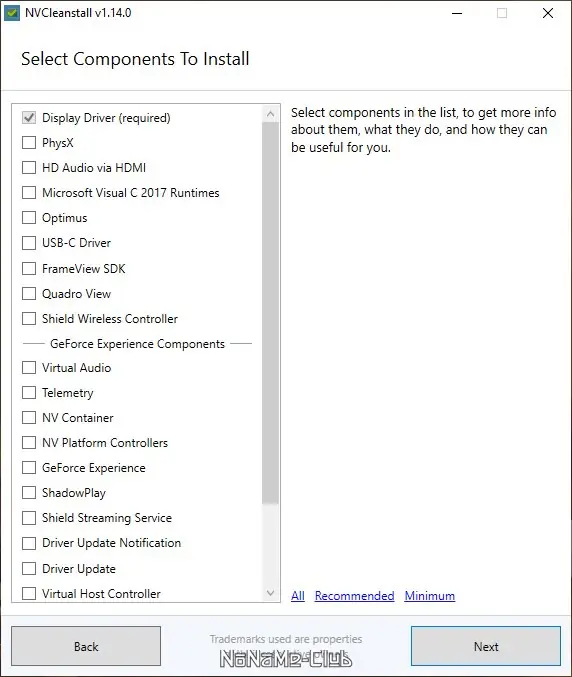 - Предоставляет расширенный выбор компонентов, включая ядро драйвера, PhysX, HD Audio и другие
