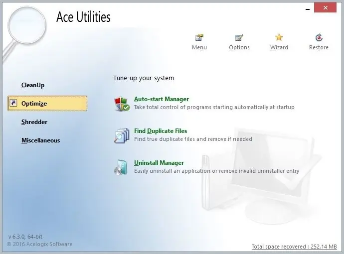 После установки Ace Utilities запускается с интуитивно понятным интерфейсом, разделённым на модули по функциональному назначению. Пользователь может начать с анализа реестра, после чего программа предложит исправить найденные ошибки. Модуль автозагрузки отображает все приложения, запускающиеся с системой, с возможностью отключения ненужных процессов для ускорения загрузки.