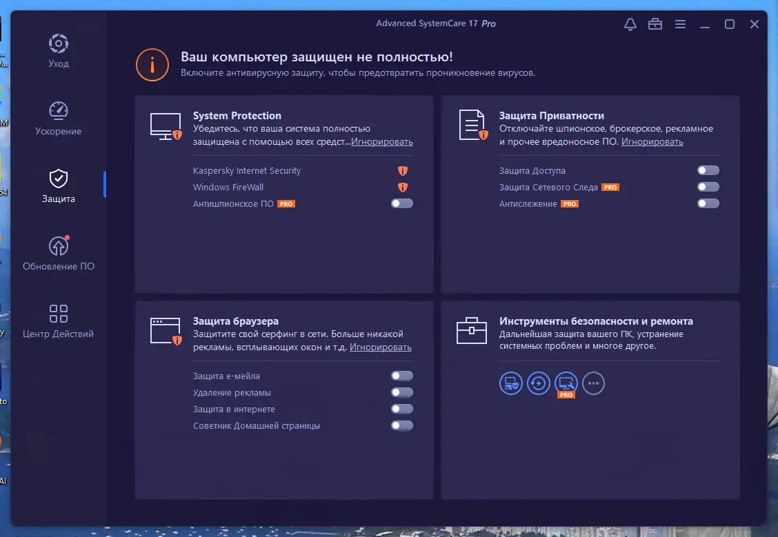 Advanced SystemCare сочетает мощь профессионального инструмента с простотой использования, делая обслуживание ПК доступным каждому.