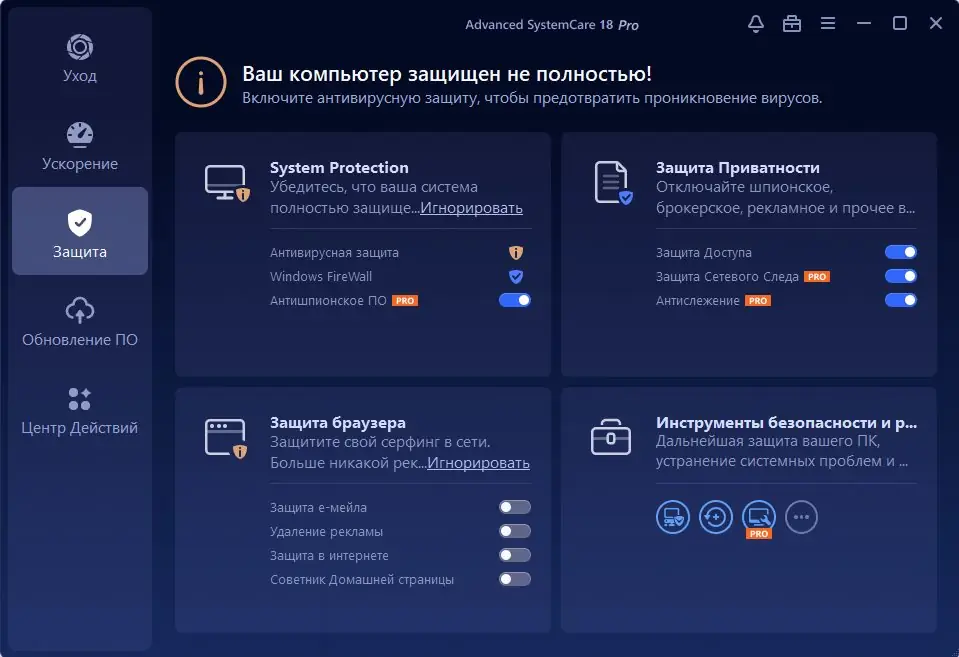 Advanced SystemCare представляет собой многофункциональный инструмент, предназначенный для комплексного обслуживания и повышения эффективности работы компьютера. Утилита объединяет в себе более 20 встроенных инструментов, охватывающих все аспекты системной оптимизации: от очистки диска и реестра до управления автозагрузкой и обновления драйверов. Благодаря продуманной архитектуре и облачным технологиям, программа обеспечивает актуальность баз данных, что критически важно для надёжной защиты и стабильной работы. Каждое сканирование выполняется с учётом текущей конфигурации системы и пользовательских предпочтений.