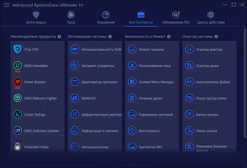Программа сочетает в себе функции системного тюнинга, защиты от киберугроз и управления автозагрузкой, что делает её универсальным решением для поддержания ПК в идеальном состоянии. Благодаря встроенному антивирусному движку, она эффективно блокирует вирусы, шпионское ПО и фишинговые сайты. Инструменты глубокой очистки реестра и диска позволяют устранять ненужные файлы и повреждённые записи, предотвращая сбои системы.