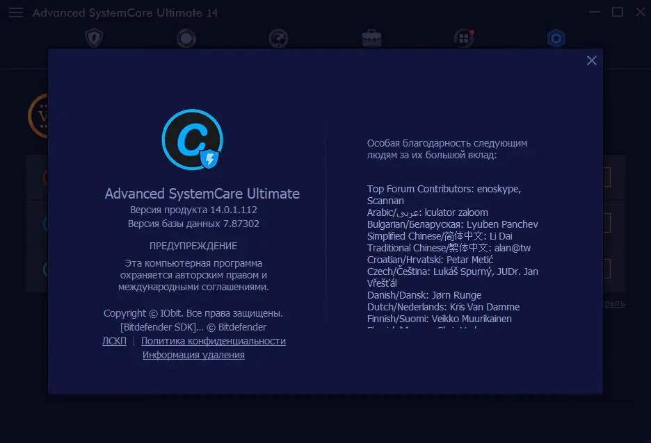 Advanced SystemCare Ultimate — комплексная утилита для оптимизации, очистки и защиты операционной системы Windows. Программа объединяет мощные инструменты тюнинга, антивирусную защиту на базе Bitdefender и автоматизированные функции обслуживания. Она обеспечивает стабильную работу ПК, ускоряет систему и предотвращает сбои, одновременно защищая от онлайн-угроз и вредоносного ПО.