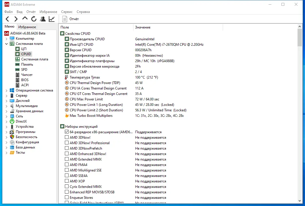 - Подробная идентификация всех компонентов ПК, включая центральный процессор, чипсет, видеокарту и устройства хранения