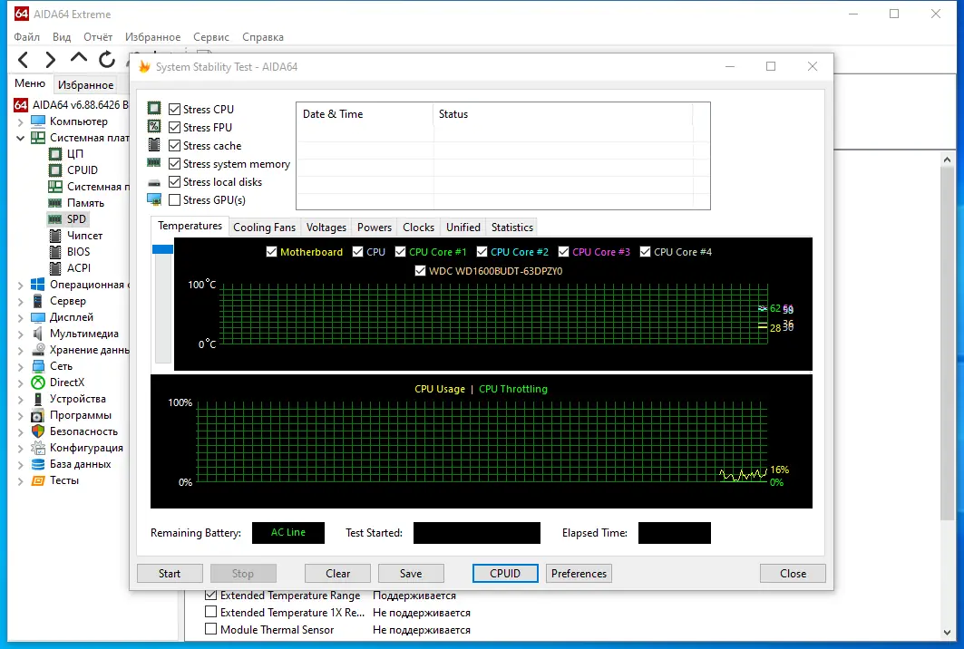 - Нагрузочные тесты CPU, FPU, памяти и дисковой подсистемы для проверки стабильности и производительности