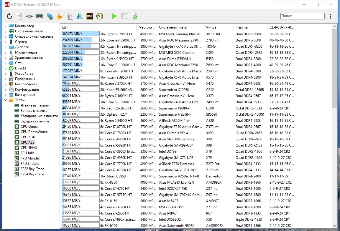 После запуска AIDA64 интерфейс отображает древовидную структуру категорий, каждая из которых содержит подробные данные о соответствующем компоненте. Пользователь может перейти в раздел «Системная плата», чтобы изучить информацию о BIOS, чипсете и шинах, или открыть вкладку «Дисплей» для просмотра характеристик экрана и видеодрайвера. Для тестирования производительности доступны специальные модули, такие как бенчмарки для CPU, FPU, памяти и дисков.