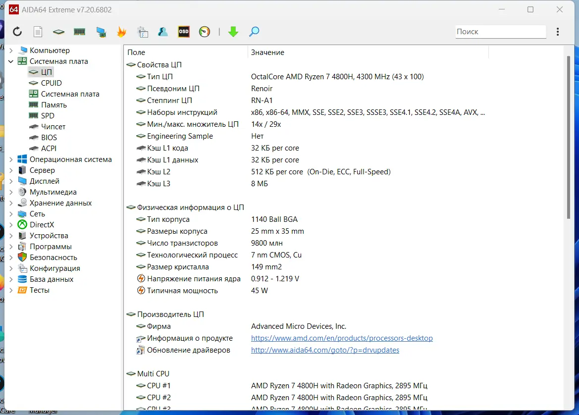 - Отображение детальной информации о центральном процессоре, материнской плате и чипсете