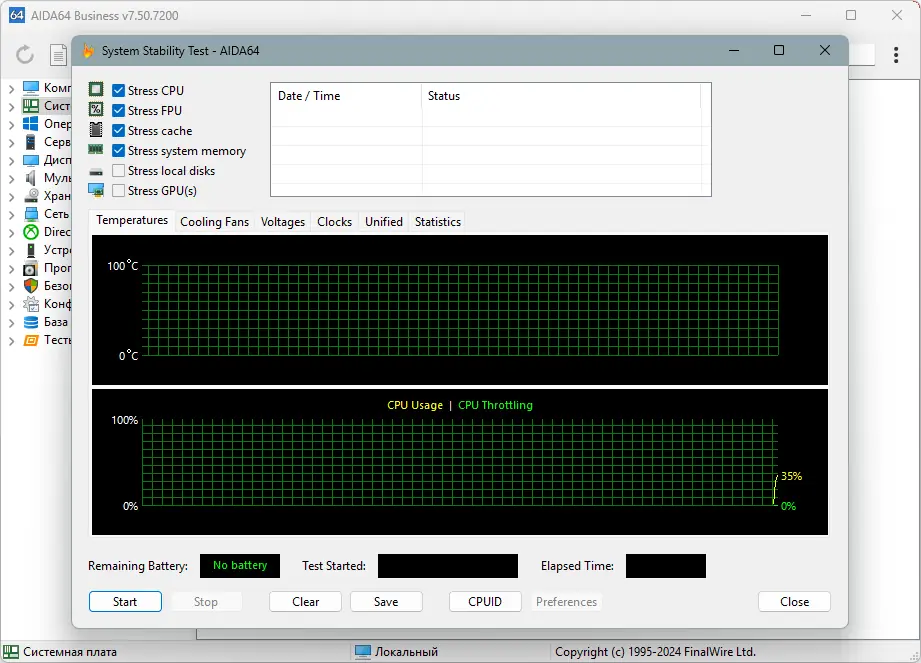 Интерфейс AIDA64 организован в виде древовидного меню, где каждый раздел отвечает за определённую категорию информации. После запуска приложения пользователь может сразу перейти к просмотру сведений о системе или запустить один из встроенных тестов. Для диагностики стабильности доступен стресс-тест, нагружающий CPU, FPU, GPU и оперативную память. Результаты тестов отображаются в графиках и логах, что позволяет отслеживать поведение системы под нагрузкой. Для создания отчета используется мастер, который экспортирует данные в HTML, CSV, XML или PDF.