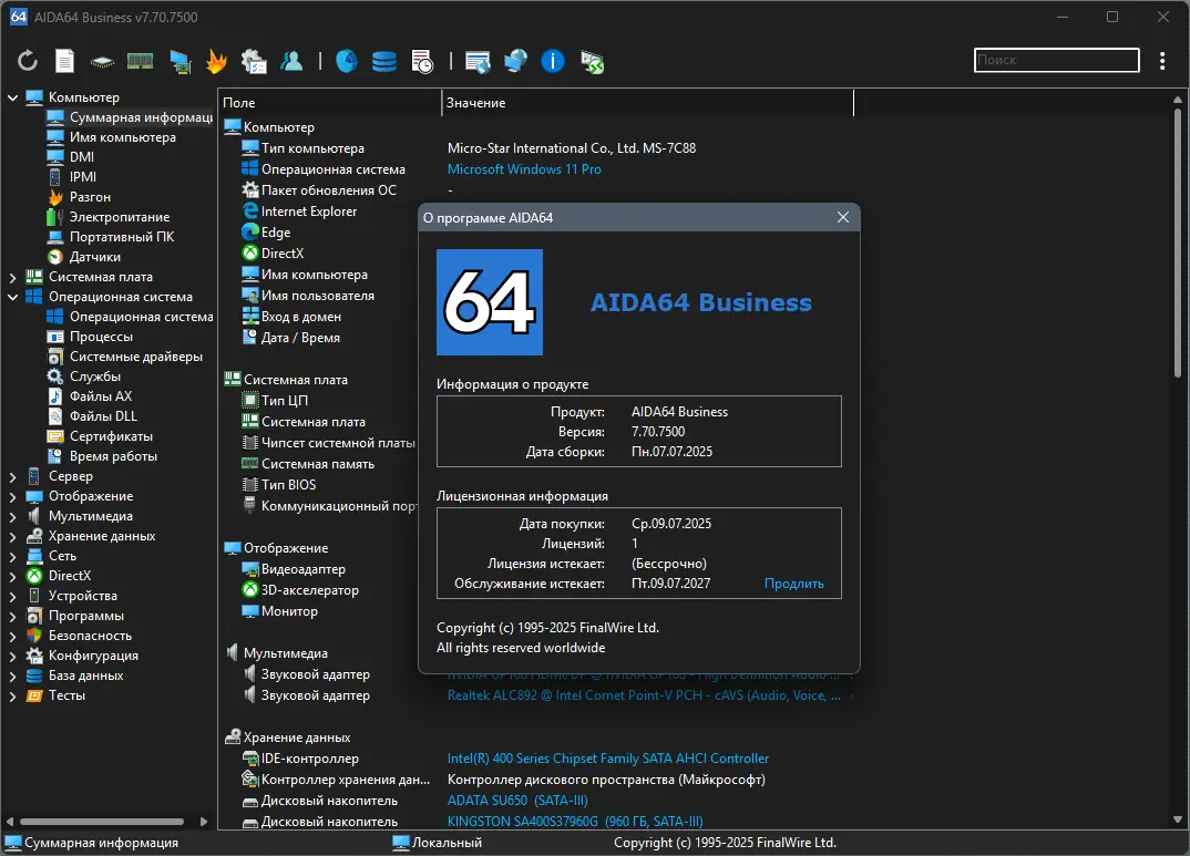 Программа AIDA64 предназначена для глубокого анализа конфигурации персонального компьютера. Она собирает информацию на низком уровне, что позволяет получить максимально точные данные о состоянии оборудования и программной среды. Утилита поддерживает все современные версии операционных систем Windows, включая последние сборки Windows 11, и работает как на 32-, так и на 64-битных системах.