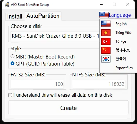 AIO Boot NewGen — это универсальное программное обеспечение для создания мультизагрузочных USB-накопителей с поддержкой Windows, Linux и macOS. Инструмент совмещает в себе гибкость настройки, поддержку современных и устаревших режимов загрузки, а также простой интерфейс, подходящий как для новичков, так и для профессионалов. Программа идеально подходит для диагностики, восстановления систем и установки операционных сред с одного устройства.