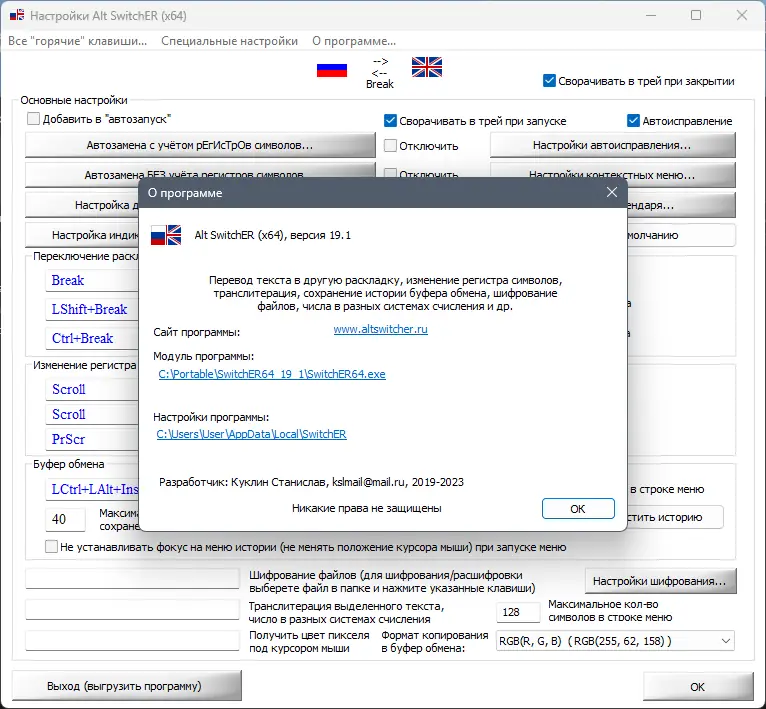 Alt Switcher — портативная утилита для автоматического переключения раскладки клавиатуры, исправления текста и расширения функционала ввода в операционной системе Windows. Программа не требует установки, не создаёт логов и не взаимодействует с интернетом, обеспечивая конфиденциальность и высокую производительность. Поддерживает гибкие настройки, включая горячие клавиши, автозамену, работу с цветами и интеграцию с внешними сервисами.