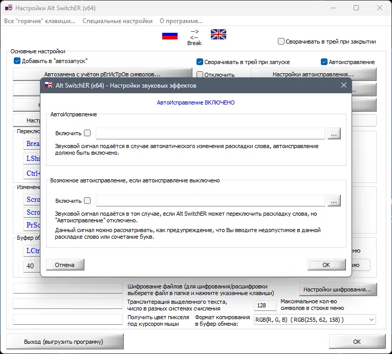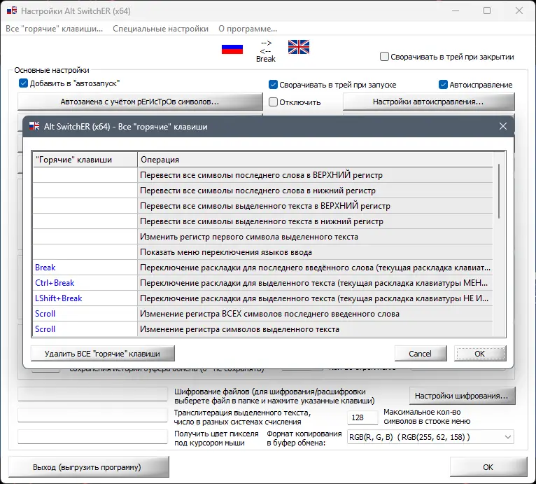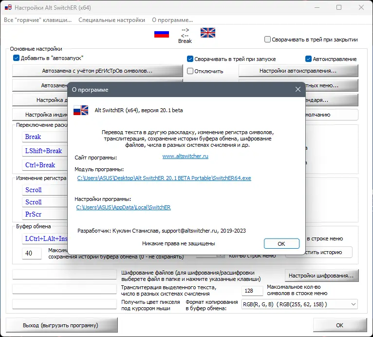 Alt Switcher выделяется среди аналогов минимальным воздействием на систему и высокой степенью кастомизации. Утилита поддерживает работу с различными форматами RGB, позволяет настраивать поведение клавиш-модификаторов и интегрируется в любые текстовые среды, включая сложные IDE и офисные пакеты. Отсутствие сетевой активности и автоматических обновлений делает её предсказуемой и безопасной для использования в защищённых средах. Программа также поддерживает портативный режим, что удобно для работы с флеш-накопителей.