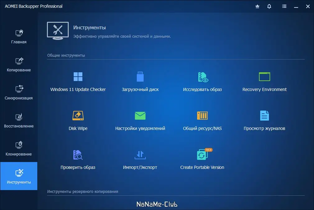 - Поддержка резервного копирования системы, дисков, разделов и файлов с возможностью восстановления