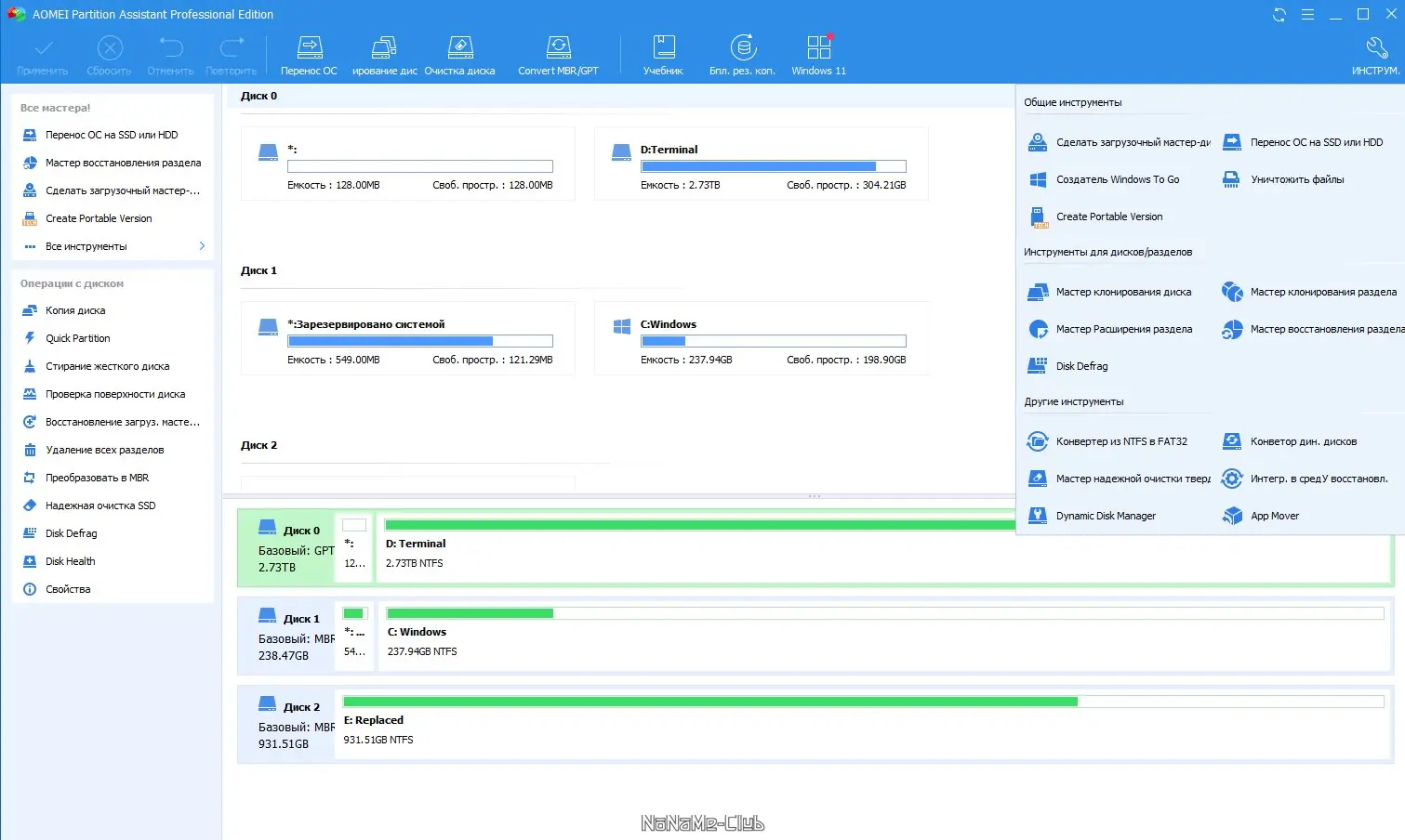 AOMEI Partition Assistant — это мощный инструмент для управления жёсткими дисками, ориентированный на стабильность и безопасность операций с разделами. Программа поддерживает широкий спектр файловых систем и дисковых стилей, включая MBR и GPT, что позволяет работать с любыми конфигурациями хранения данных. Она совместима с HDD, SSD, флэш-накопителями и RAID-массивами, обеспечивая надёжность при выполнении критически важных задач.
