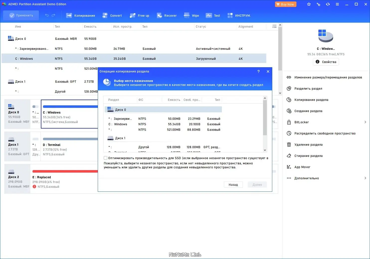 AOMEI Partition Assistant Standard Edition — это бесплатное программное обеспечение, предназначенное для комплексного управления дисками и разделами в операционных системах Windows. Утилита поддерживает как базовые, так и продвинутые функции администрирования накопителей, включая изменение размера разделов без потери данных, перенос системного раздела, конвертацию файловых систем и безопасное удаление информации. Программа совместима с различными типами дисков, включая SSD, HDD и USB-накопители, обеспечивая стабильную работу на всех современных версиях Windows.